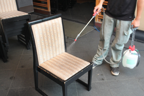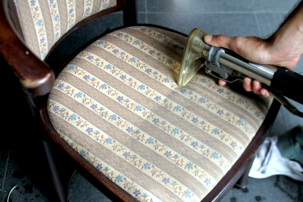 椅子 洗浄中クリーニング剤と水を出しながら急速なバキュームにより生地を洗浄します。