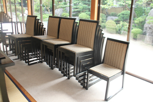 福岡の観山荘様の椅子のクリーニング及び張り替えのご用命を
