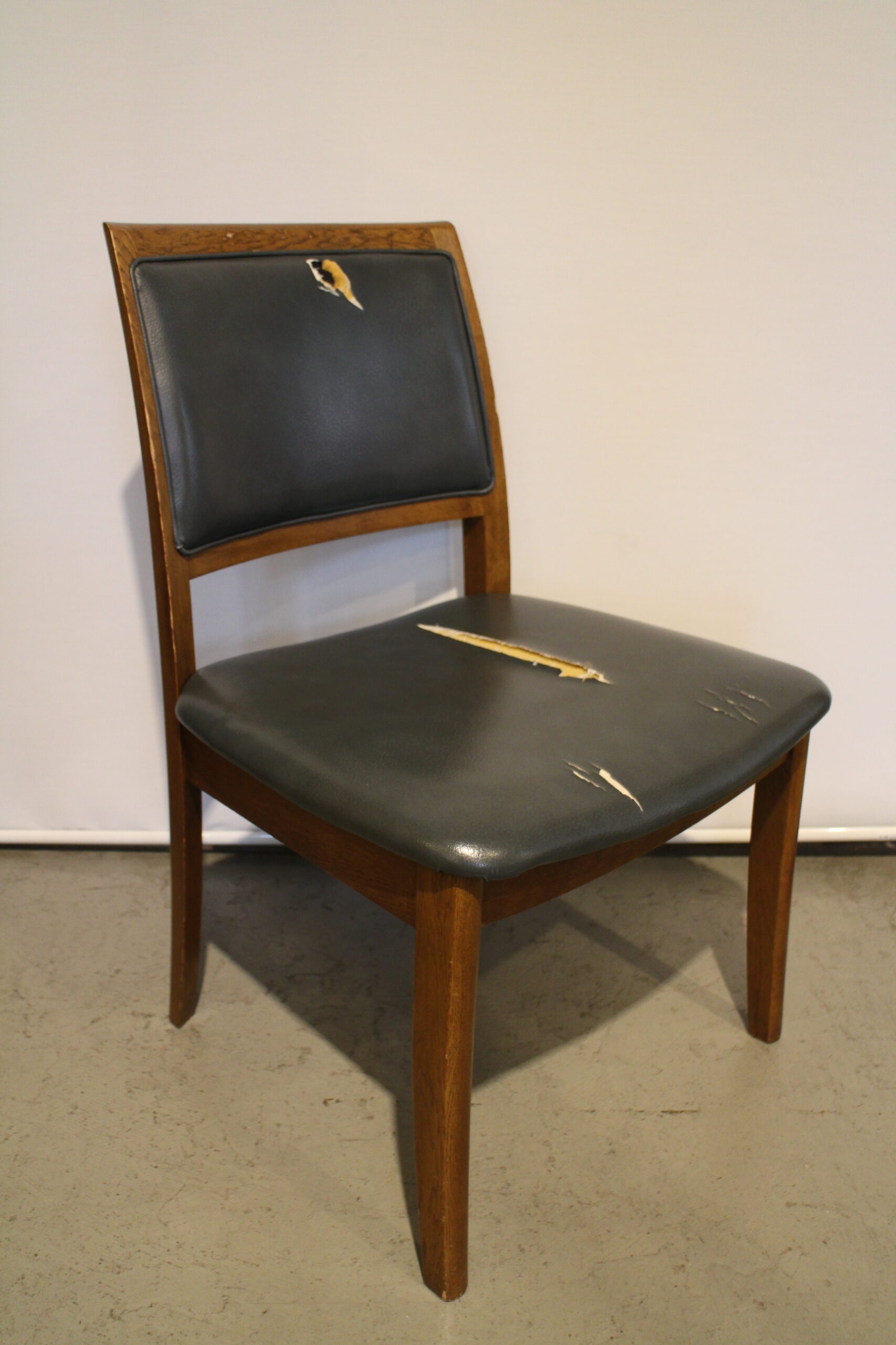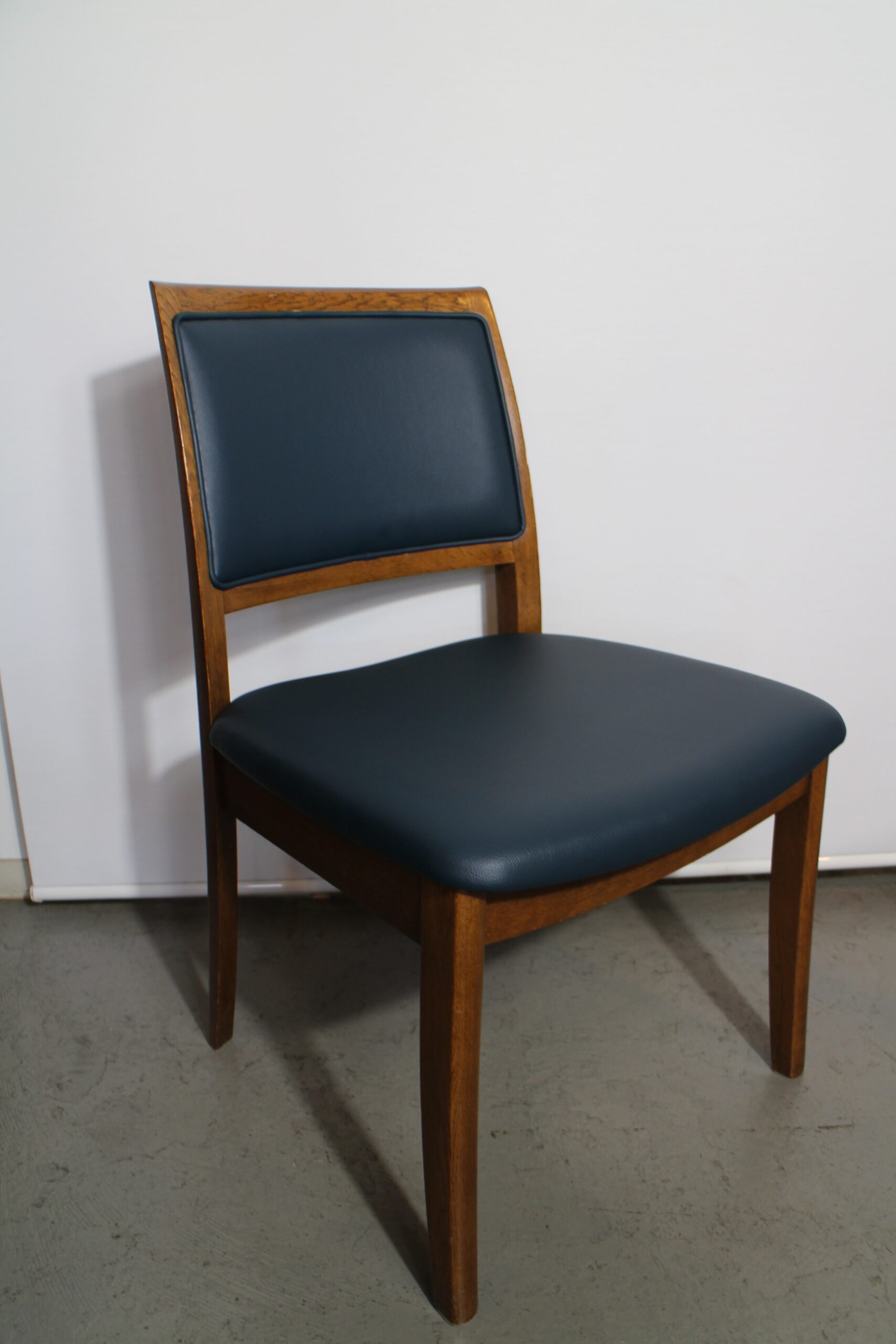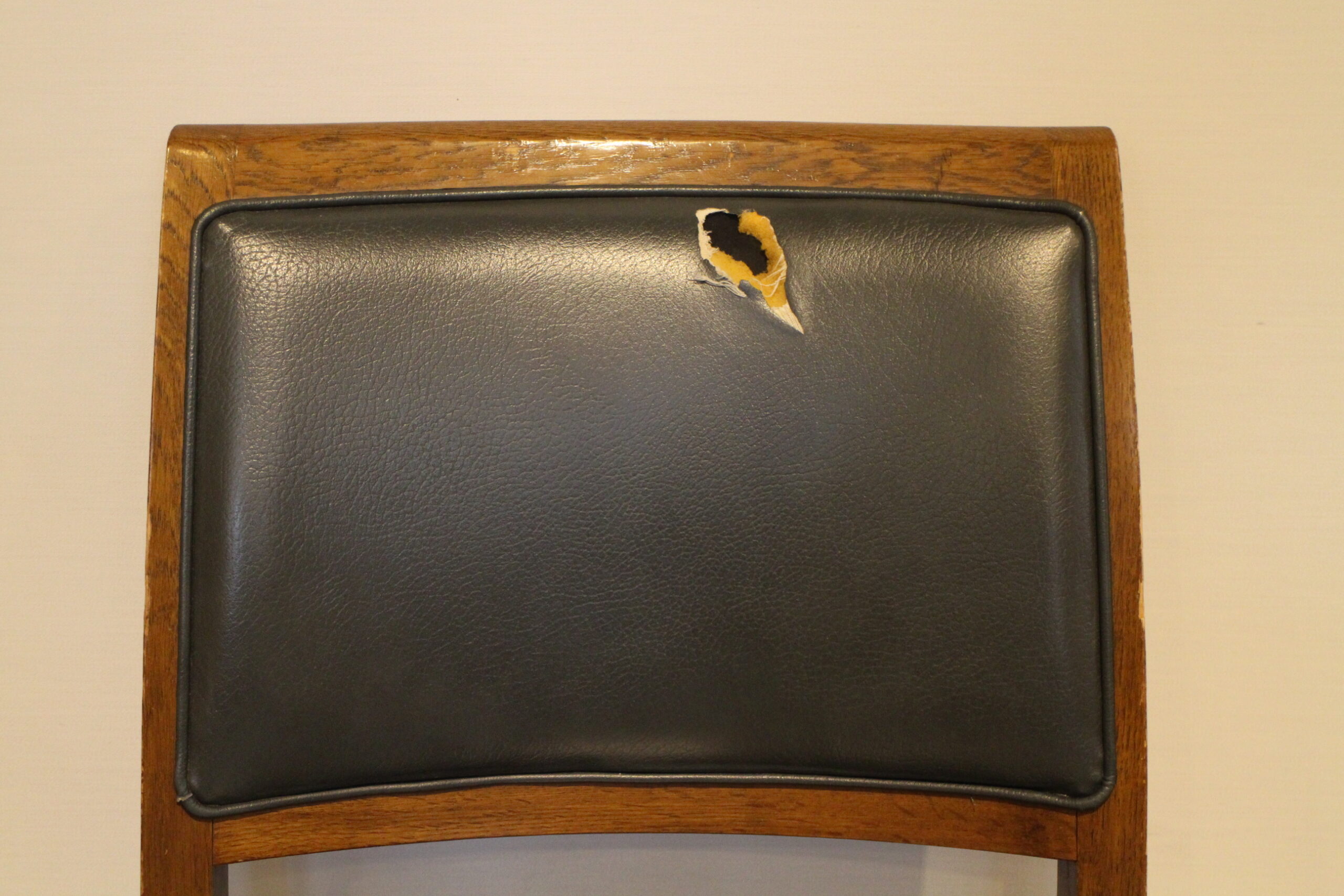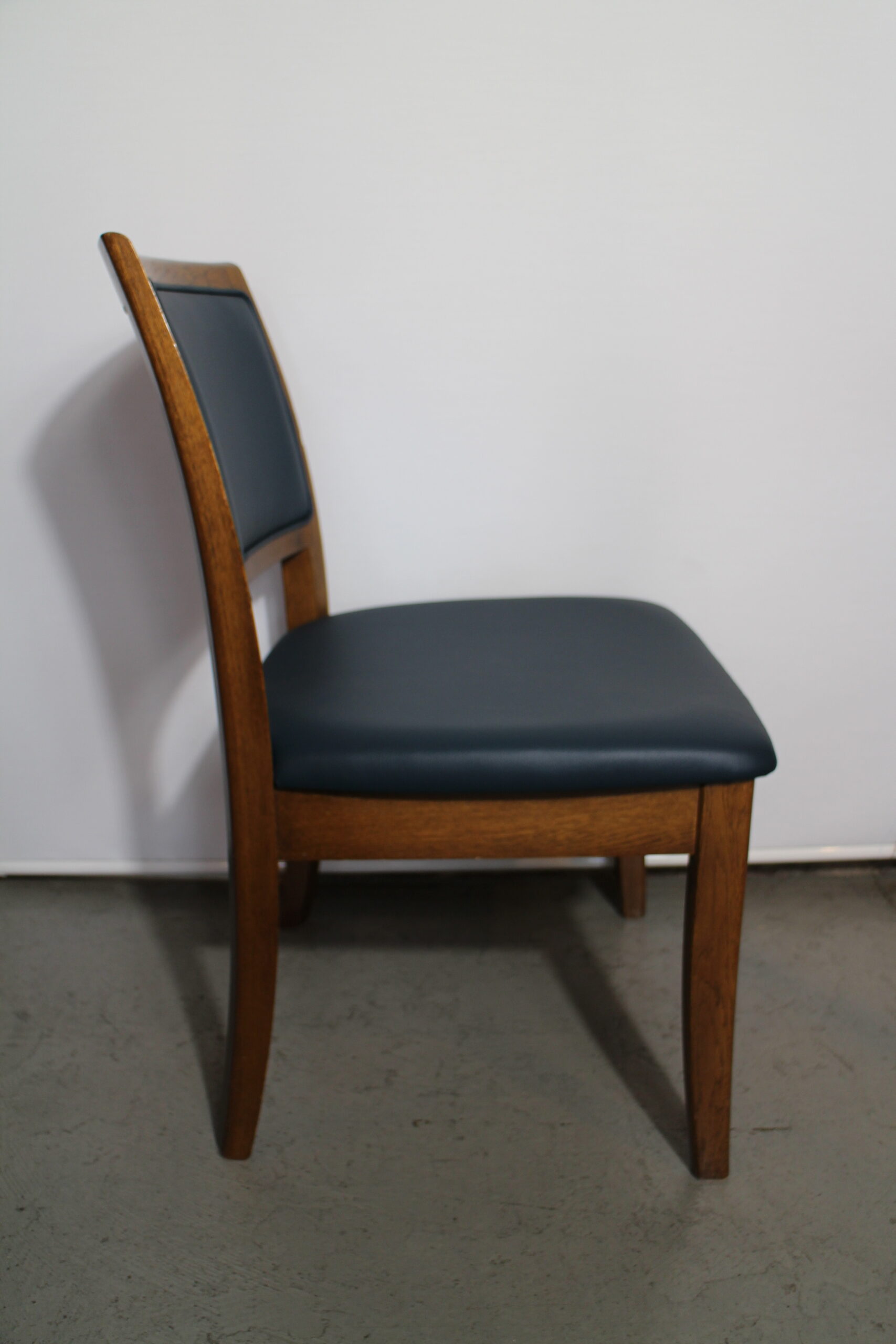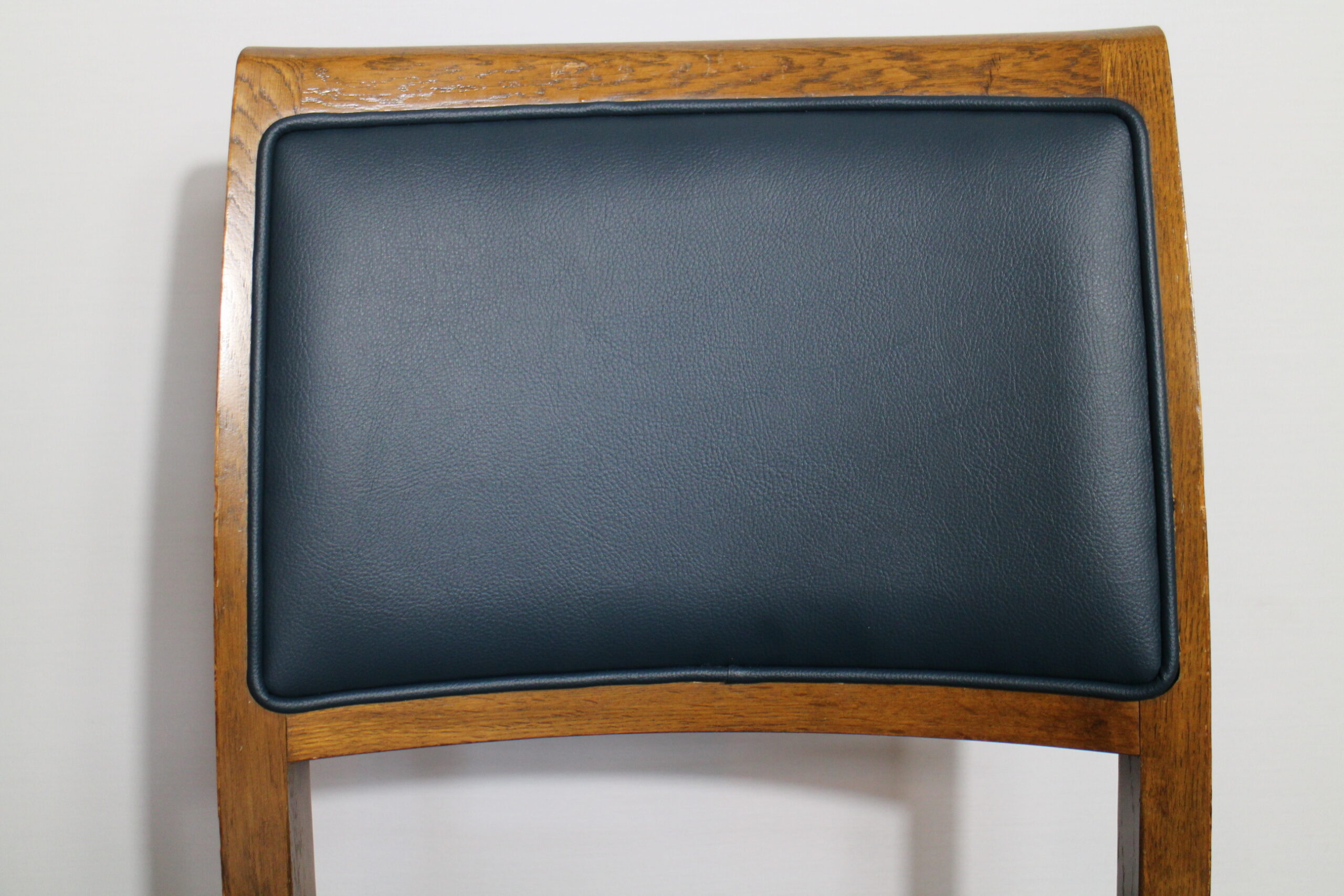 背もたれ及び座面の張替え事例です。 本体がしっかりしているので 張り替えした後も安心してお座り頂けます。 少し落ち着いたブルーで張り替え致しました。
