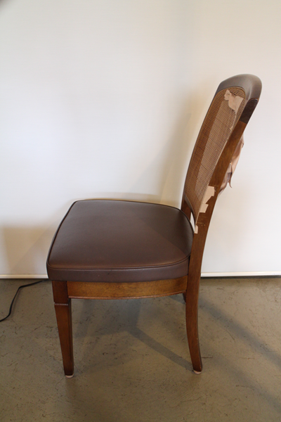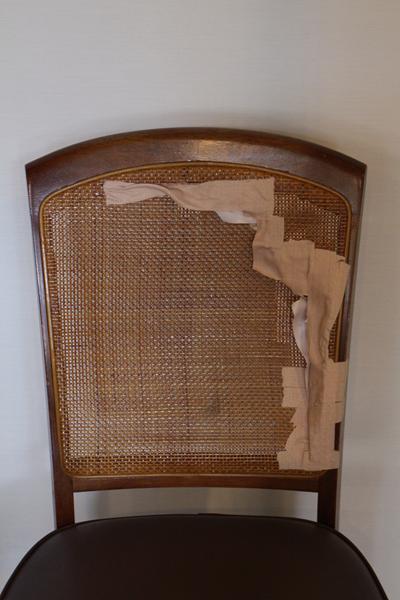 マルニダイニングチェアの背もたれ張替えです。籐で張ってありましたが、今回は座面の色に合わせて張替えを行いました。