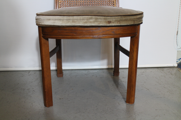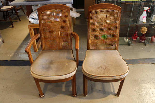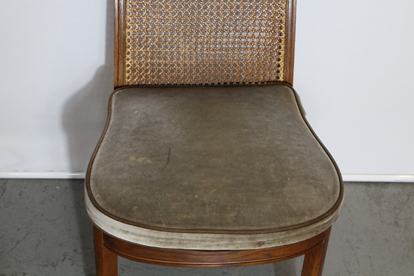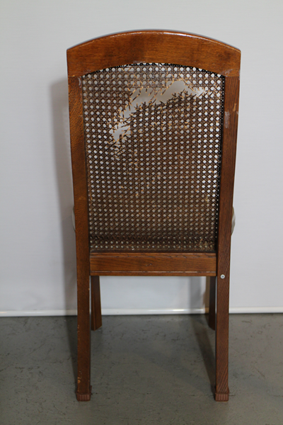オールドカリモクの椅子です。長い期間使われていてフレーム全体のぐらつき、背もたれ籐