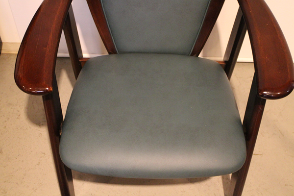 今回は本革から合皮に張替えました。シンプルにステッチも無しで張りました。