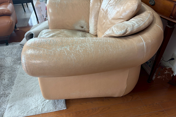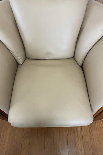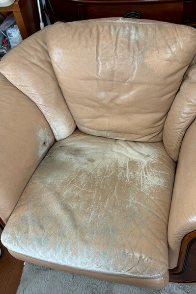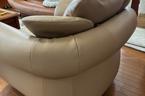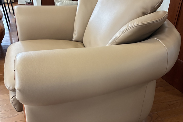 大型1人掛けソファの張替えです。今回は本革から合皮(べたつかず、強度がある素材)に本体、背もたれ、座面を張り替え 中身のクッションも減っていましたので、ウレタン入替まで行いました。座り心地もかなり良くなりました。また末永くお座りになってください。