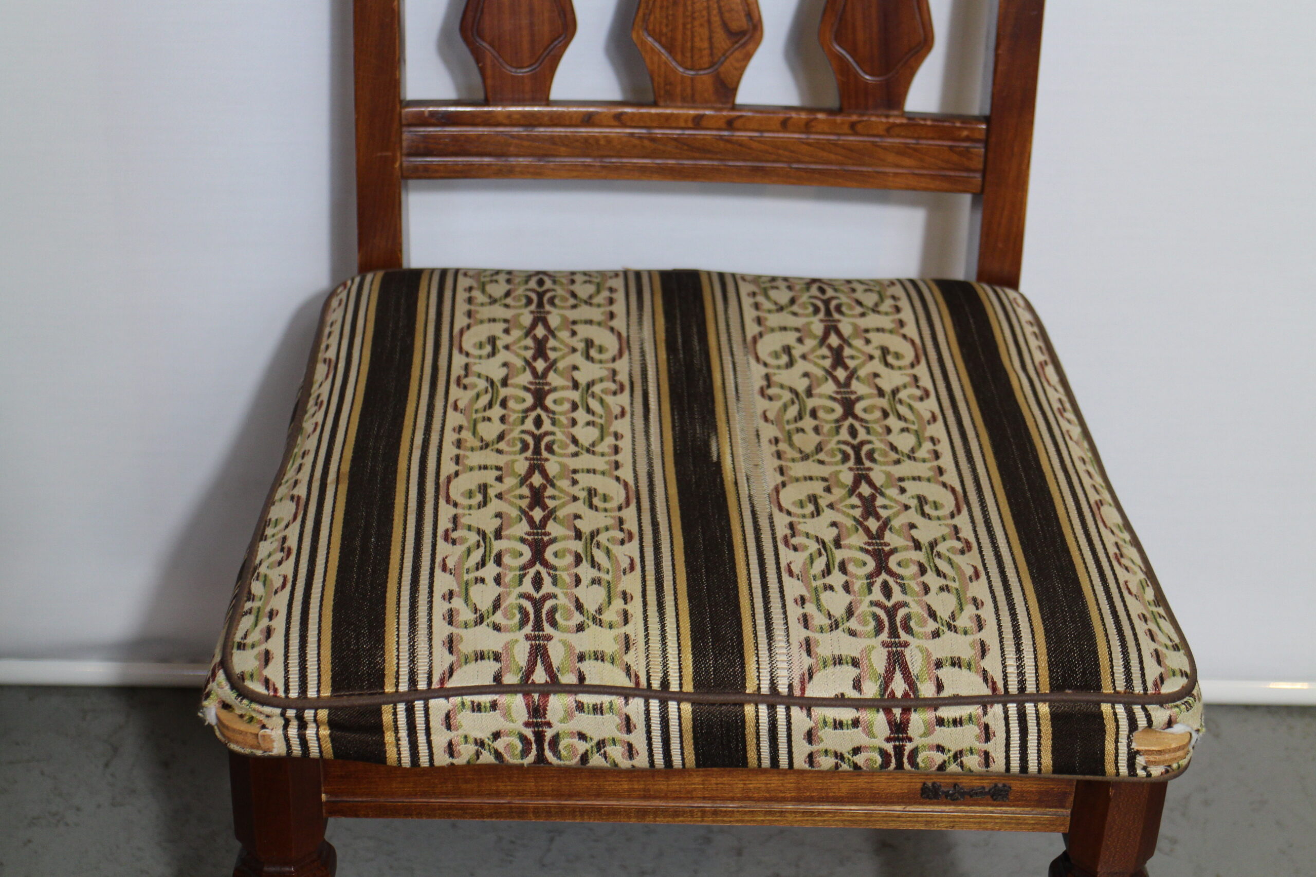 元々の素敵な柄の生地が特徴ある椅子で出来るだけ雰囲気が