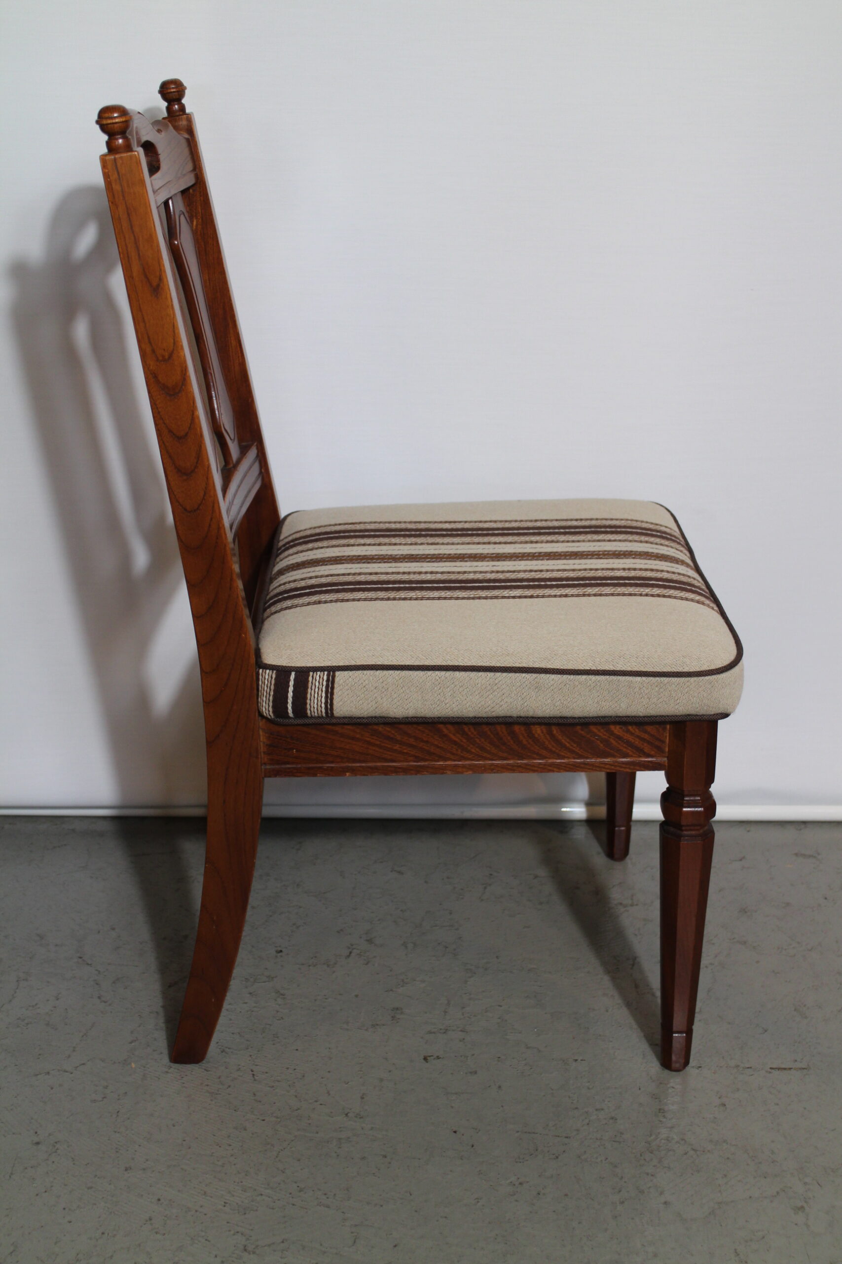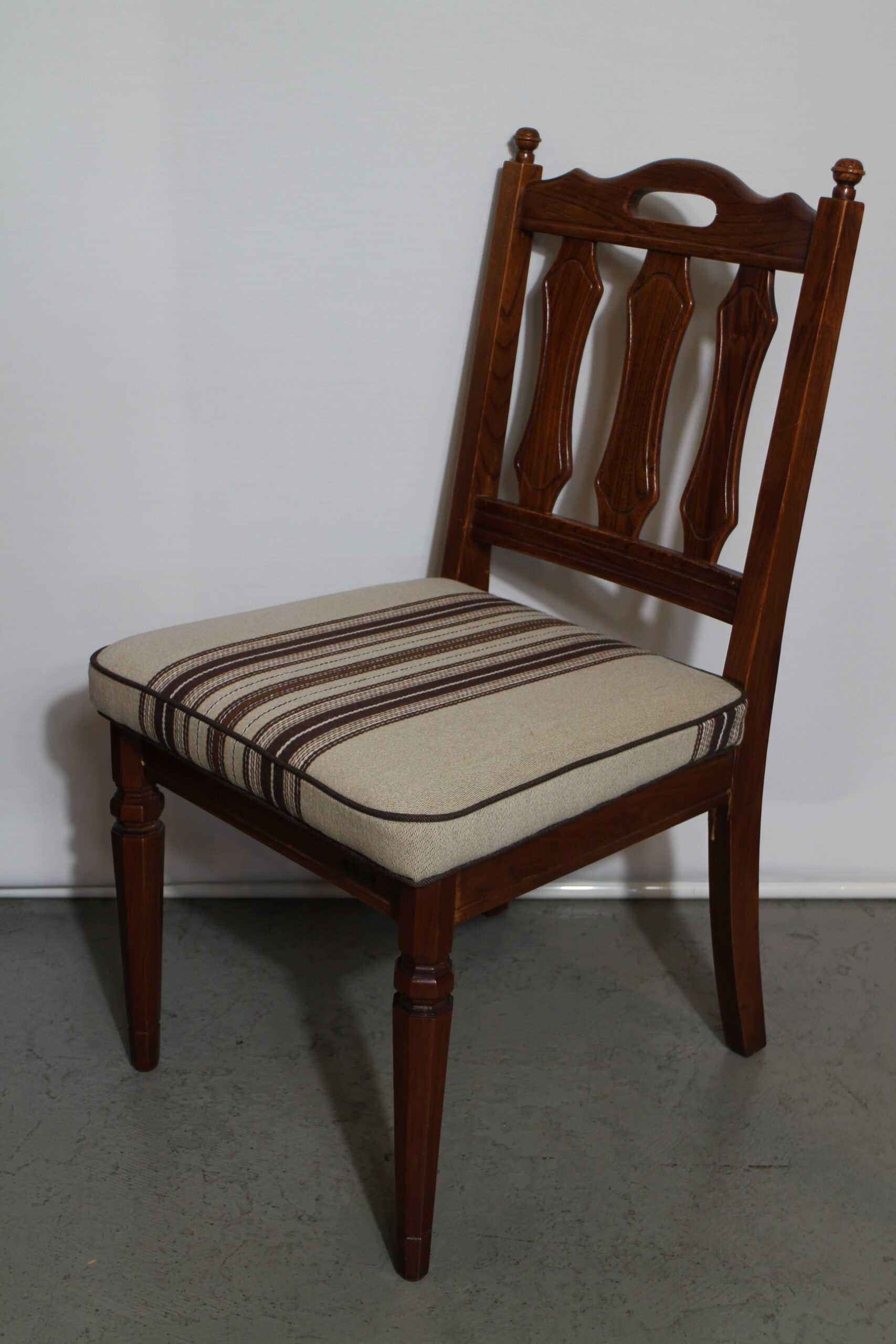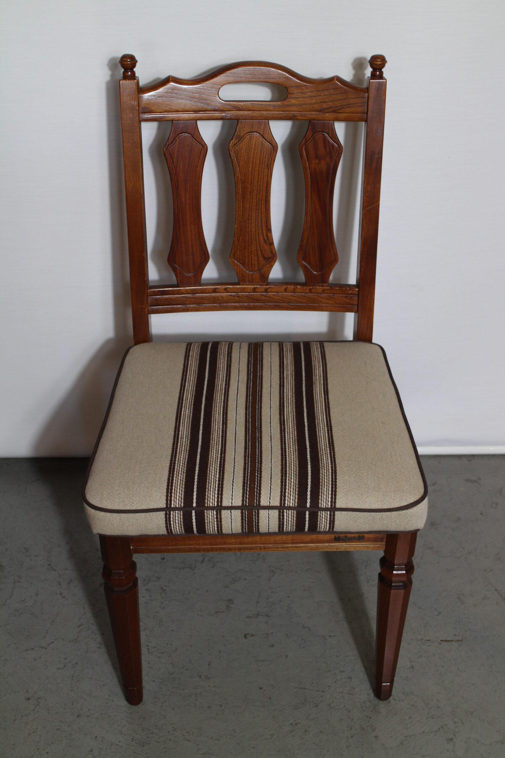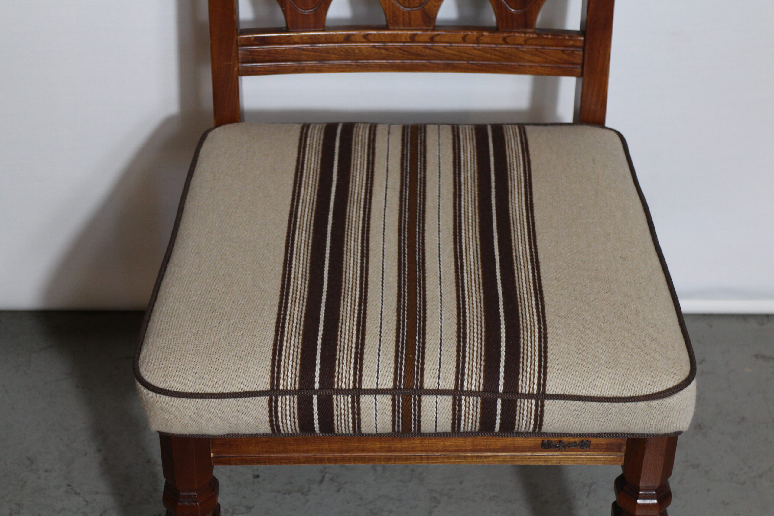 デンマークのストライプ柄の生地を中央に持ってきて素敵に張り替え生まれ変わりました。