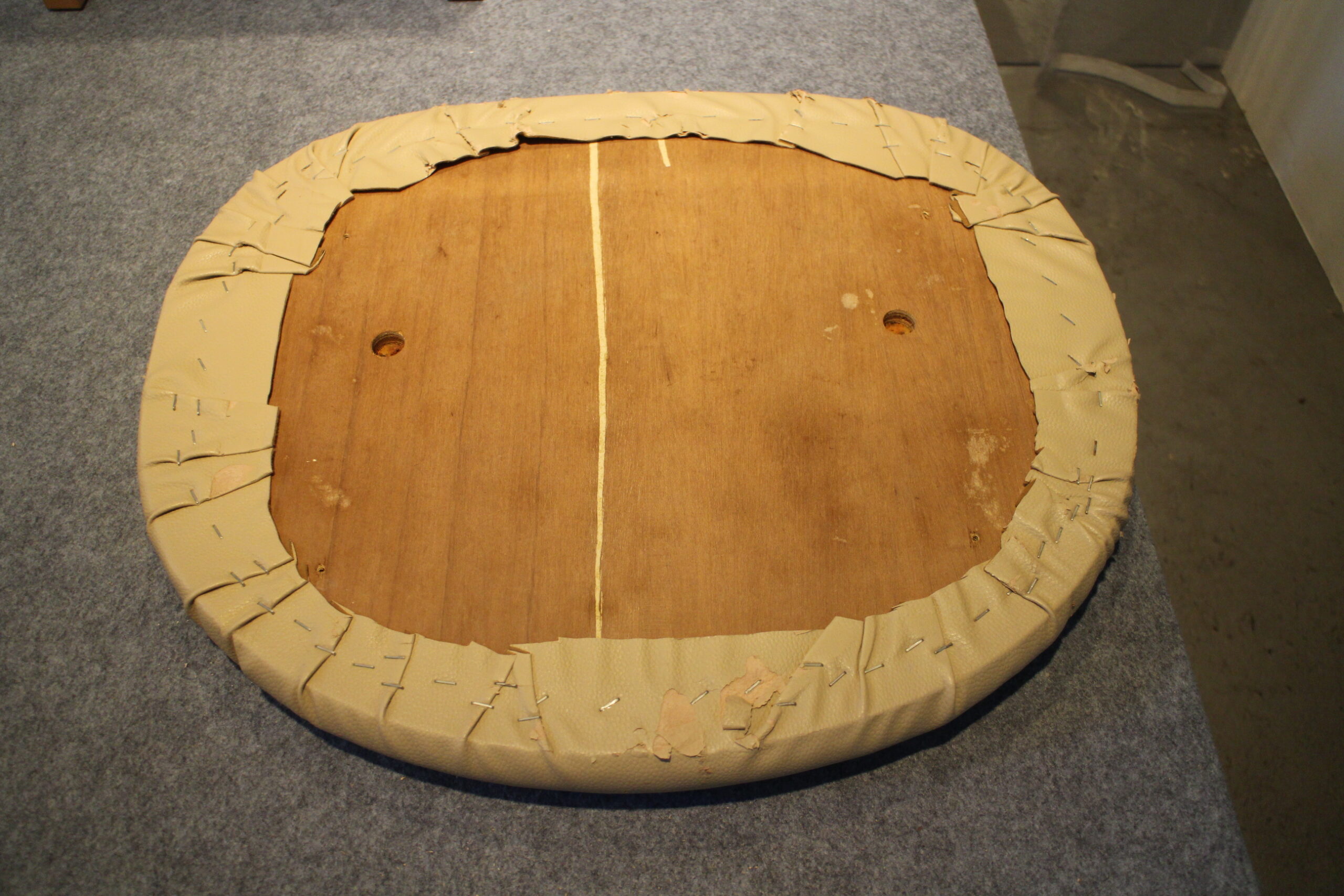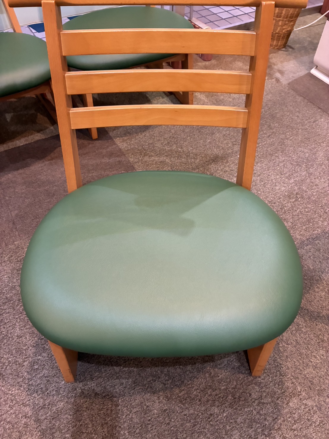 Tクリニック様待合室の椅子座面張替です。長い間お使いになられて、表面の剥がれクッション部の減りが大きく見られます。