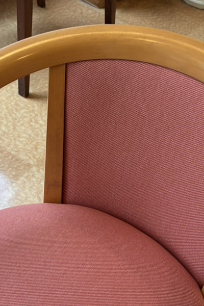 クリニック様 待合室椅子の背と座面張り替えです。現行の生地にほぼ同じものを見つけて張替えました。