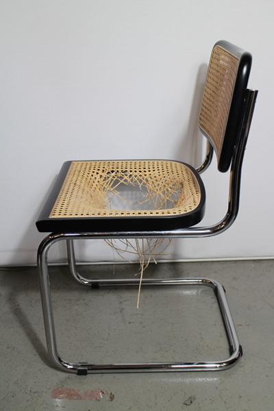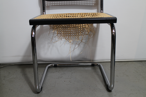 座面にこのような大きな穴が出来てしまっても、張り替えれば綺麗になり、また長い期間お座りになれます。