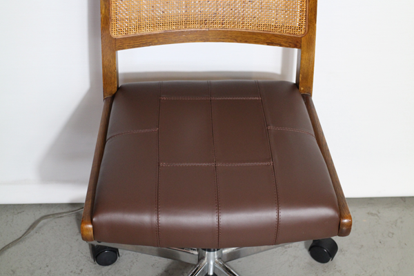 背もたれの籐の張り替えと座面の革張りの交換修理