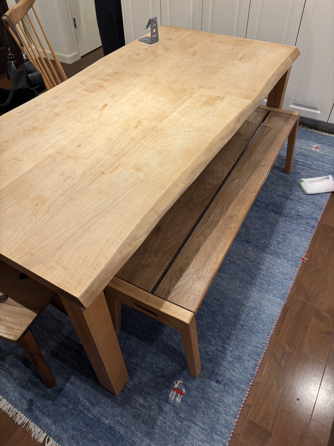 以前当店にてお買い求め頂いたメープル材無垢剥ぎテーブルの天板