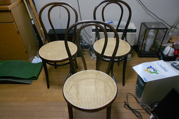 トーネット製の曲げ木の籐椅子の座面張替です。