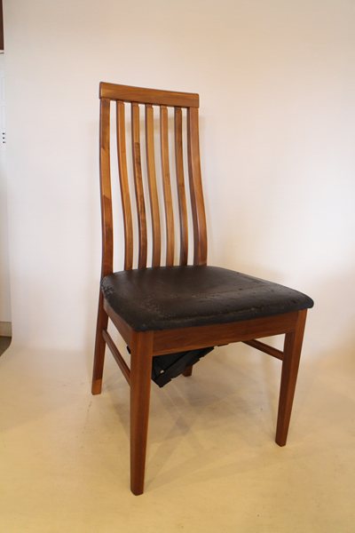 DCチェアの張り替え事例です。 合皮の座面部分が擦れてきてクッションも傷んでいましたので 新しく張替えとウレタンを交換しました。
