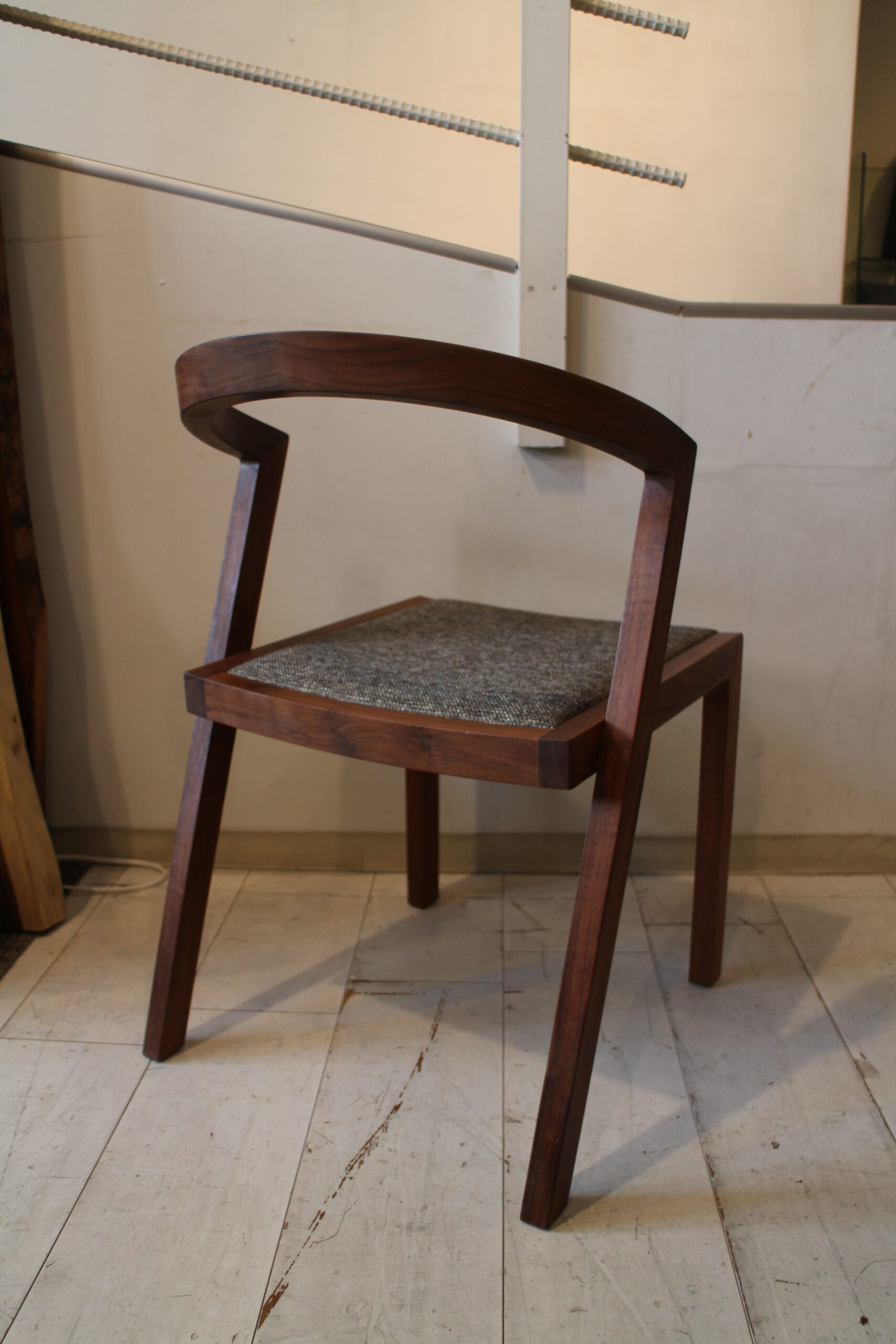 座面の張り方が特徴の椅子で、木部のフレーム構造もとてもユニークな