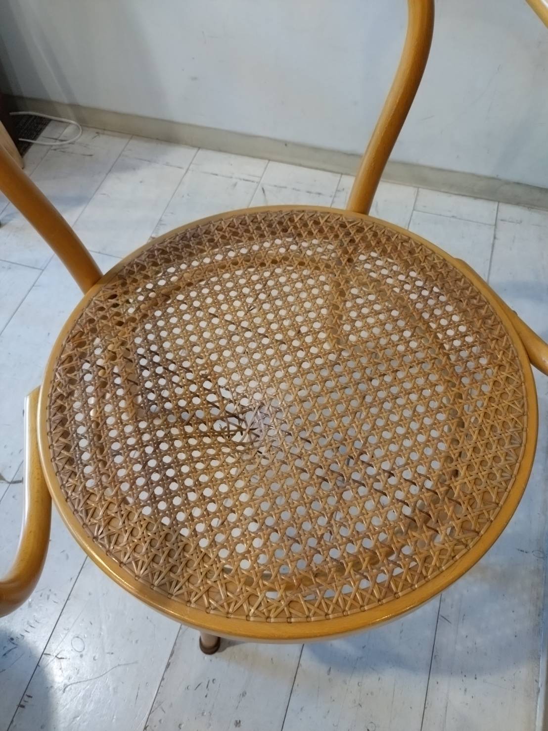トーネットの曲木椅子の座面籐張り替え事例です。