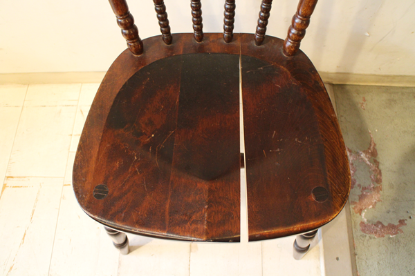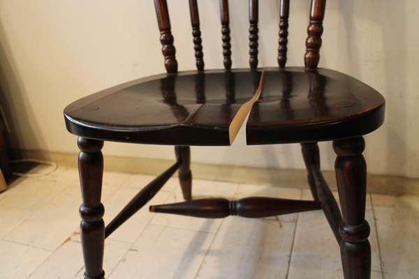 座面の割れと脚のはずれ部分を修理して