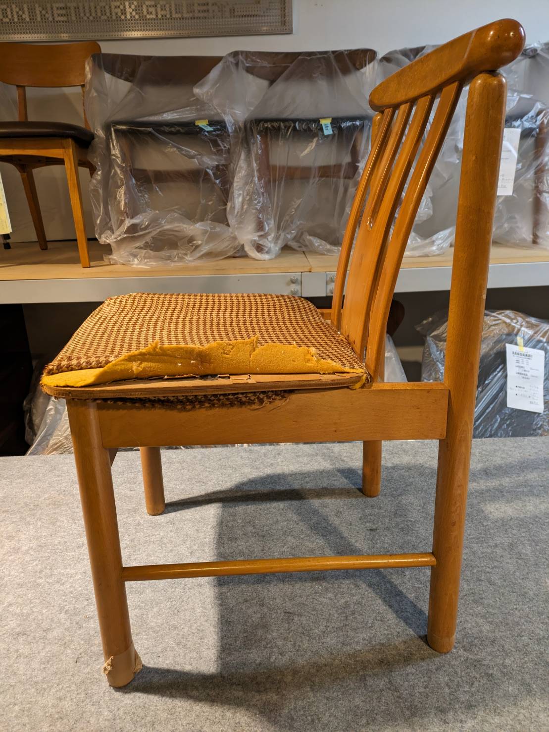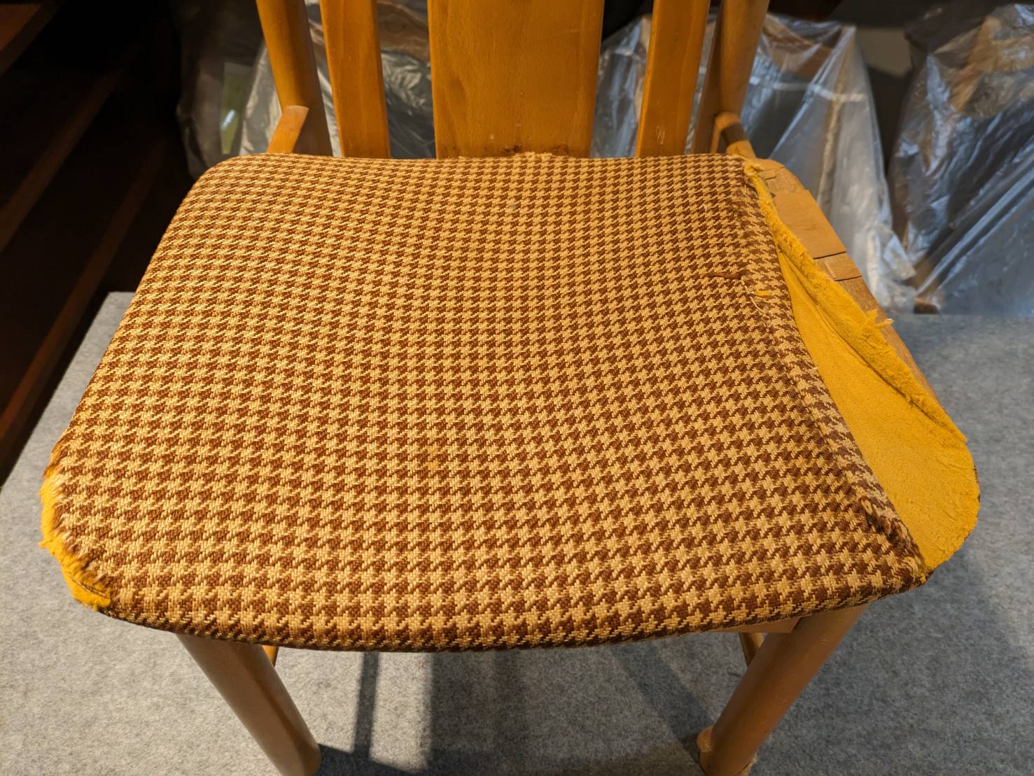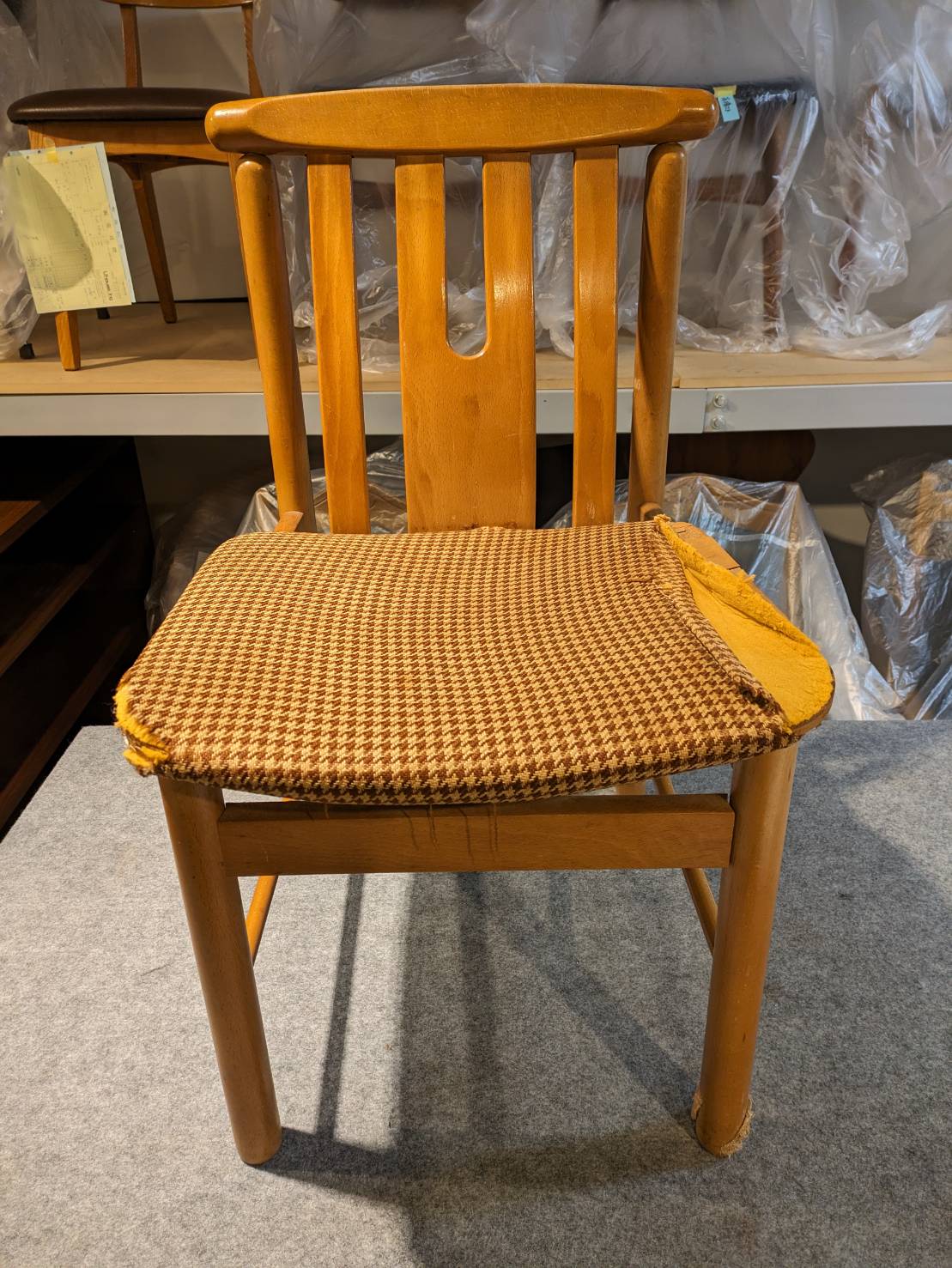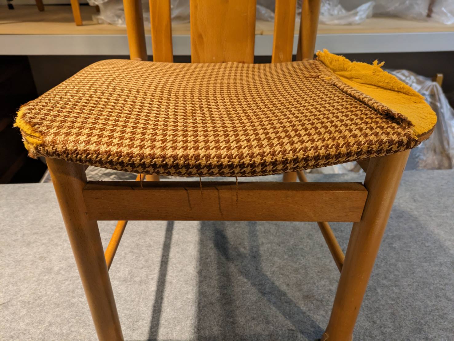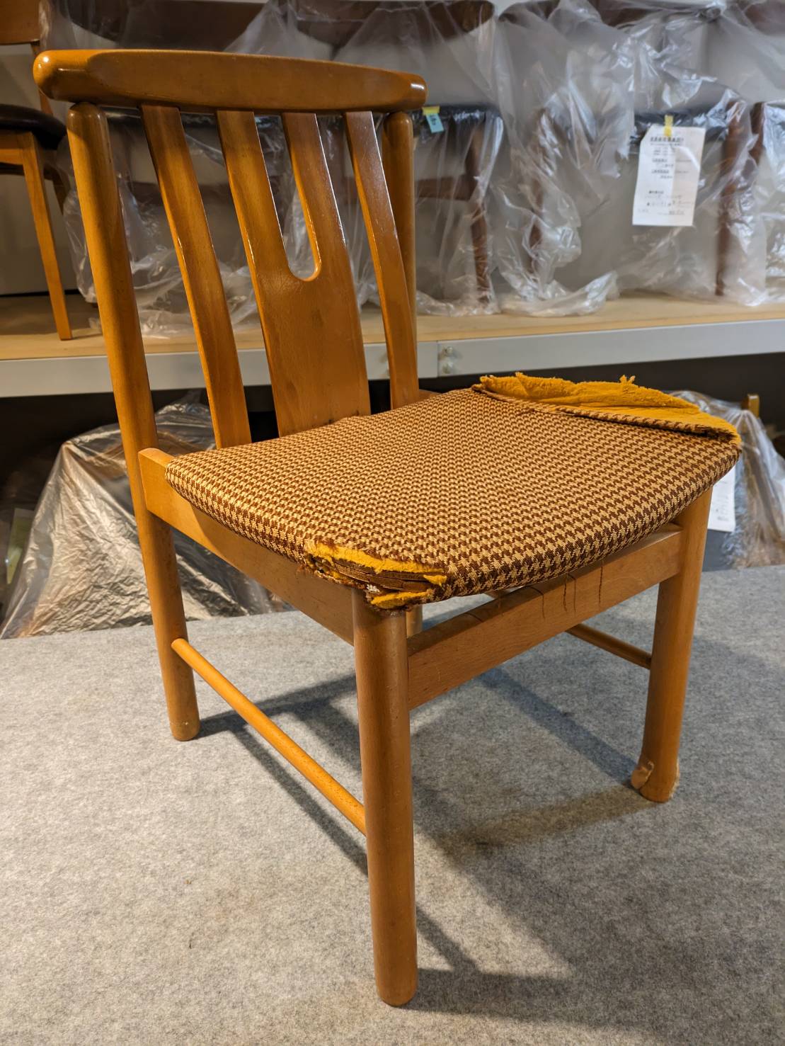 長らくご使用のダイニングチェアの座面がぼろぼろになり中尾ウレタン共に新しく交換張替えを
