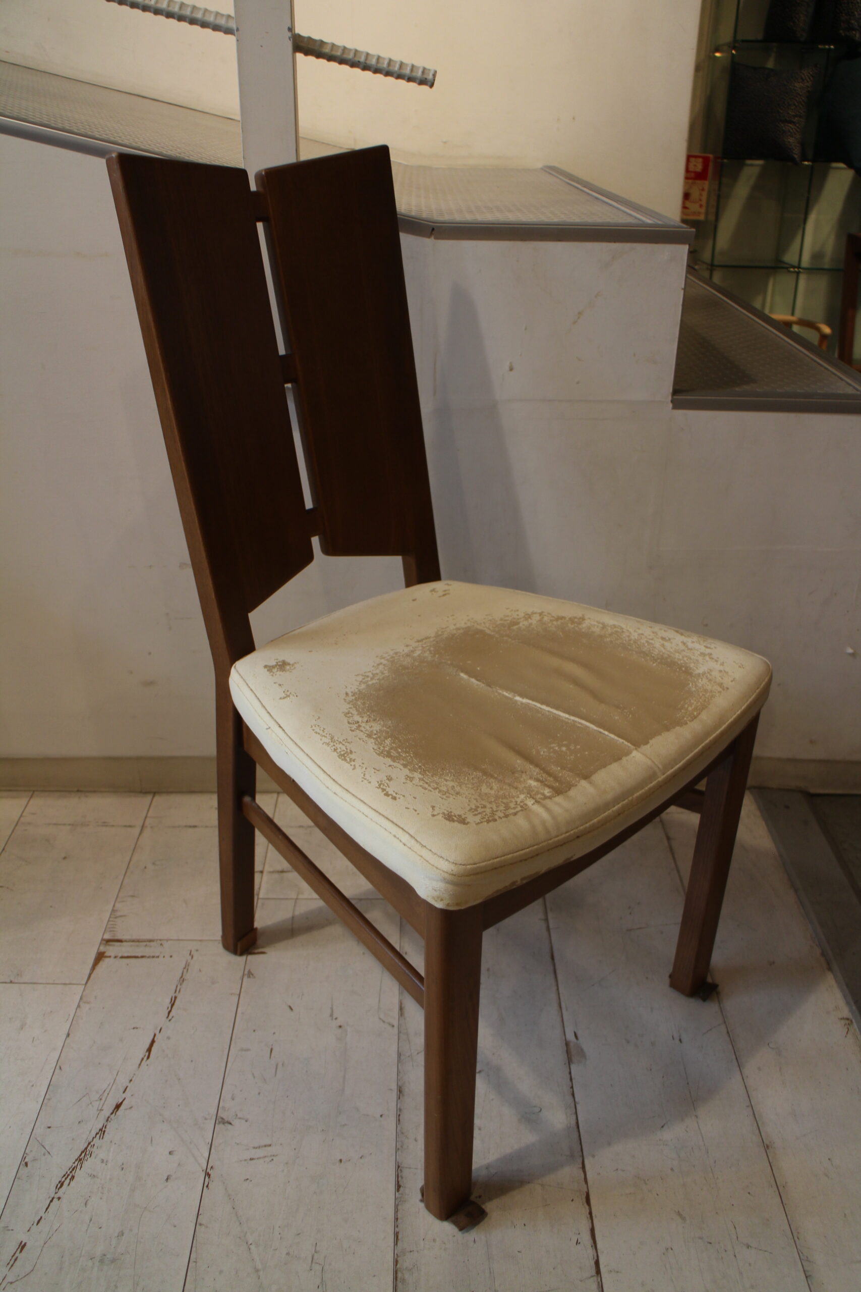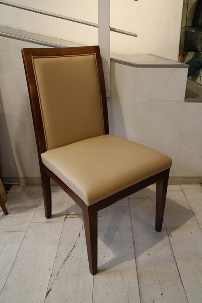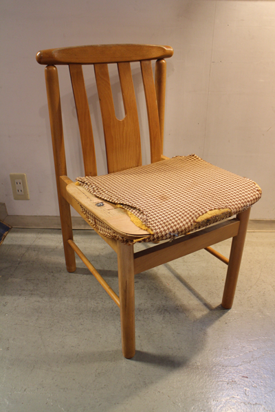 食卓椅子の背・座面張替え+ウレタン交換です。今回はファブリックから合皮に張替えさせていただきました。