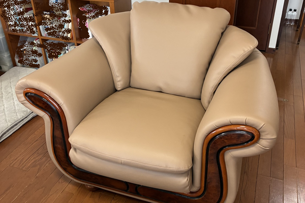 大型1人掛けソファの張替えです。今回は本革から合皮(べたつかず、強度がある素材)に本体、背もたれ、座面を張り替え 中身のクッションも減っていましたので、ウレタン入替まで行いました。座り心地もかなり良くなりました。また末永くお座りになってください。