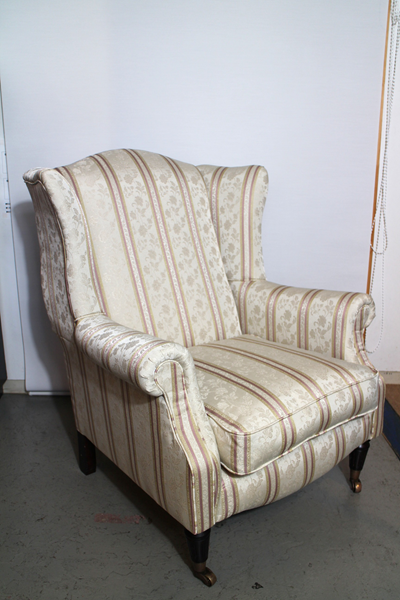 お客様との打ち合わせで、座面と背もたれの生地を切り替えて張り替えました。とても素敵に出来上がりました。