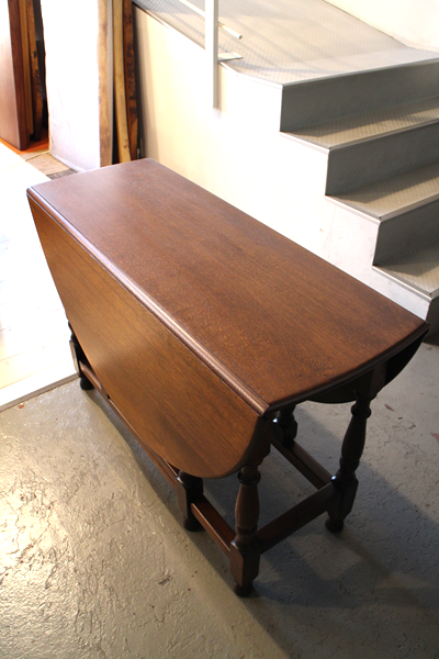 アンティークテーブルの再塗装です。塗装を剥がして軽く研磨します それからウレタン塗装を行います。元々光沢ある仕上がりでしたが、