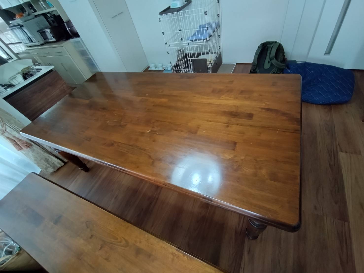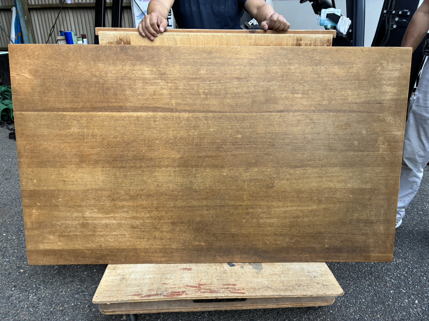 以前当店にてお買い上げ頂きました、チーク材の無垢板テーブルのお手入れ